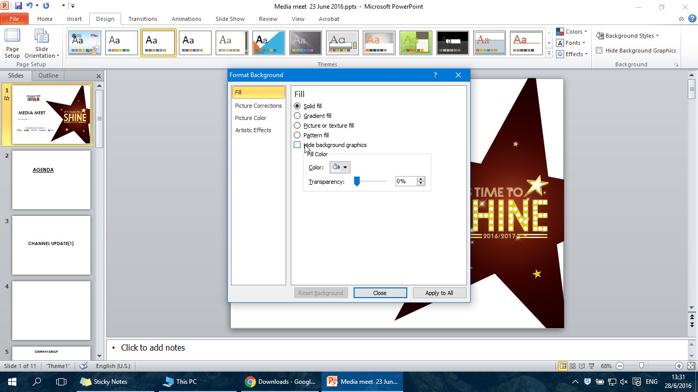 6. Right click "format background" ,un-tick "hide background" and Apply to all